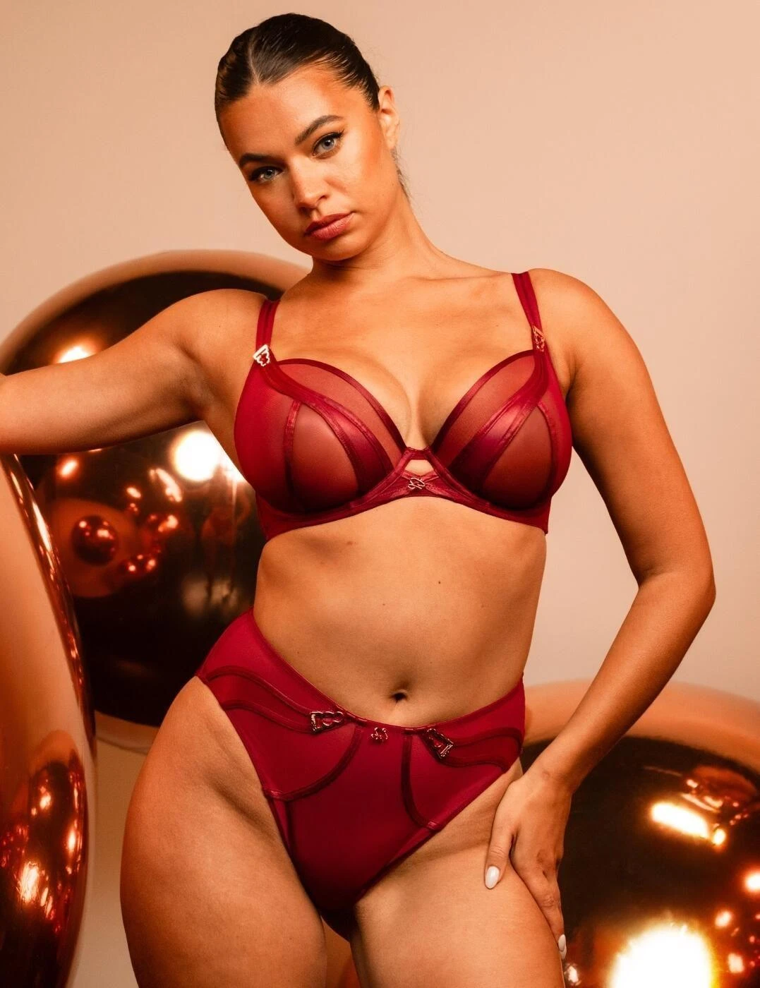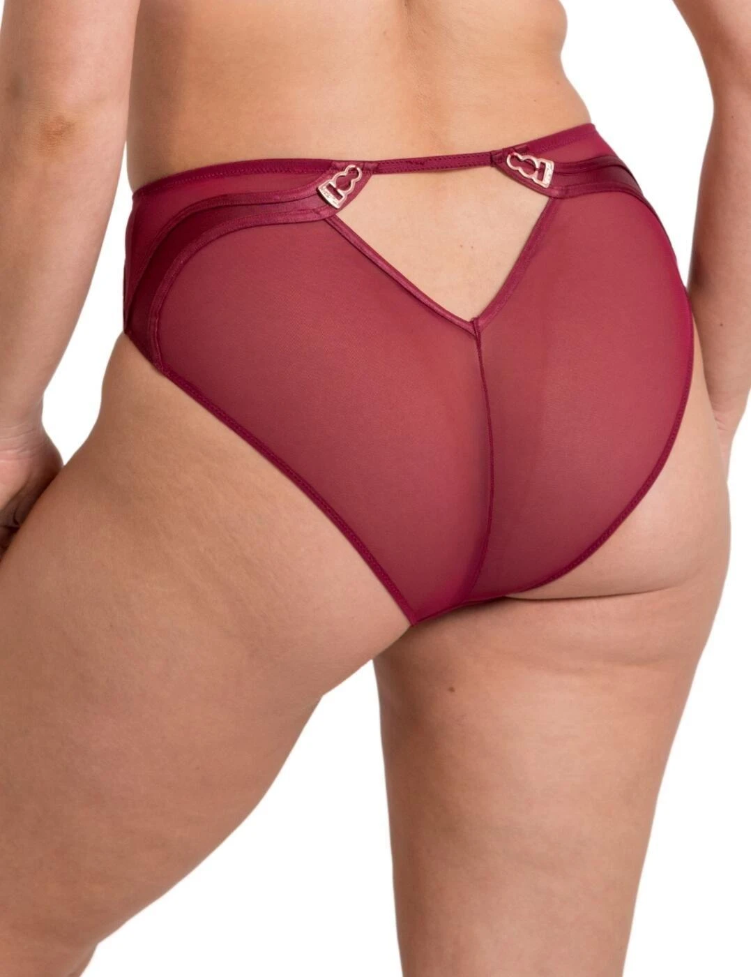 Get ready to make a statement with the Scantilly by Curvy Kate Suspense high-waisted brief. Elegant sheer and shimmer panelling adorns the brief for a captivating style. The sultry sheer look on the rear offers cheeky coverage while the sophisticated high leg cut enhances your natural curves. There is a fun cut out detail on the rear and rose gold hardware detailing for a flirty finish. Consciously developed with recycled polyamide, so not only are they a glamorous choice but also champion eco-friendly fashion. Pair these statement briefs with a coordinating bra for a stunning ensemble.