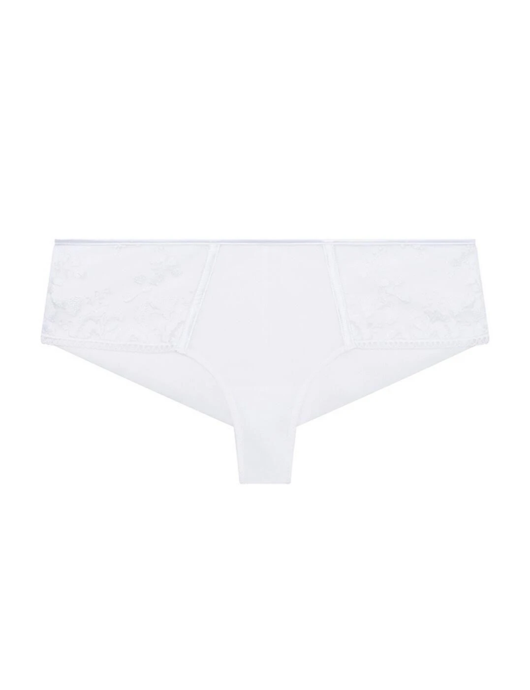 Make your everyday lingerie choices stand out in the most captivating but subdued way with the beautiful retro-inspired Orphee collection from the luxurious Simone Perele. These shorty briefs are made out of comfortable tulle materials, which cling to your curves and prevent any undesirable VPL. The comfortable mid-rise waist and moderate rear coverage, together with wider sides, make sure that you are not hindered in your daily tasks. The elegant style of these briefs shows with the understates but very pretty embroidery on the sheer panels on the front sides. Indulgent satin trims add a finishing touch to this gorgeous piece.