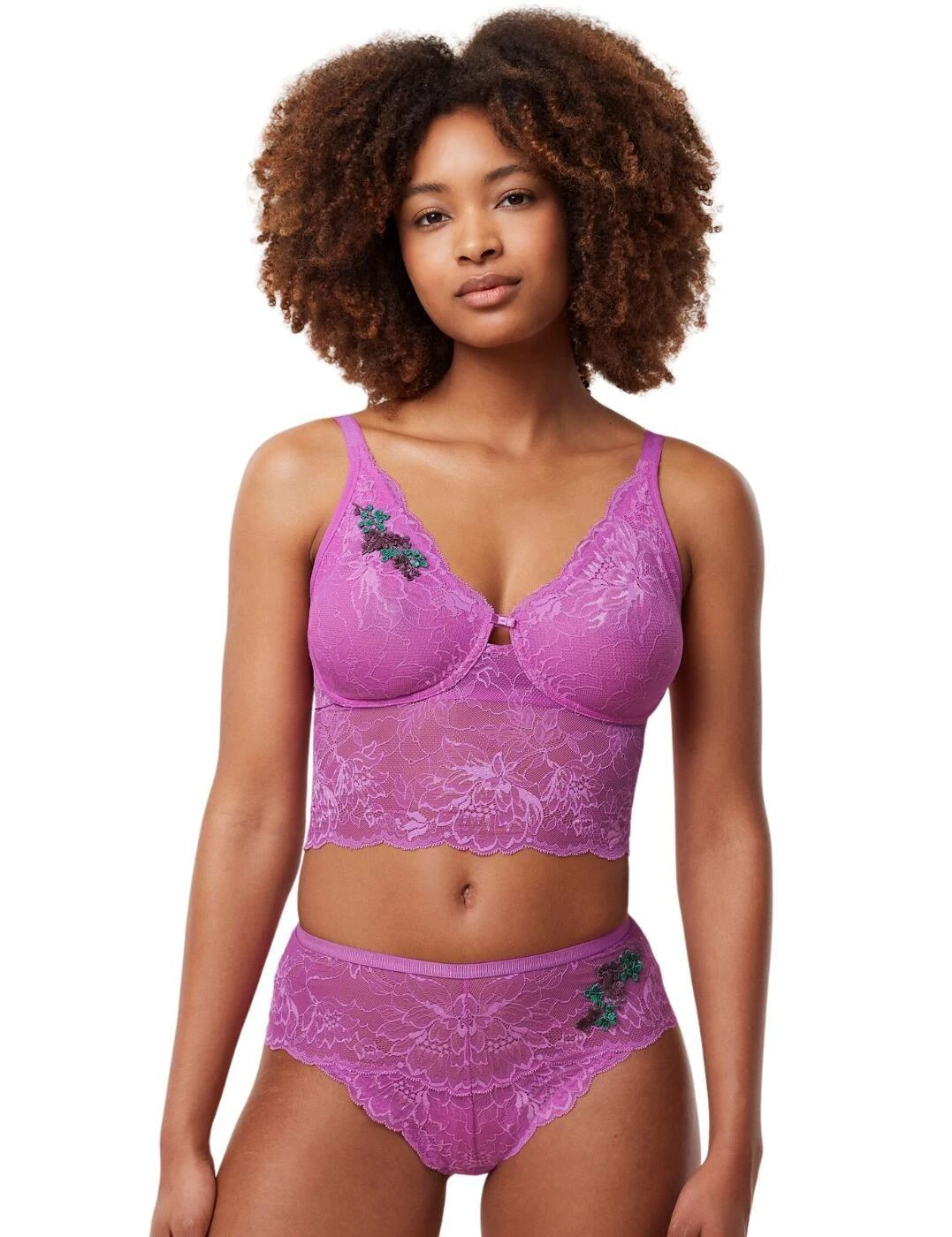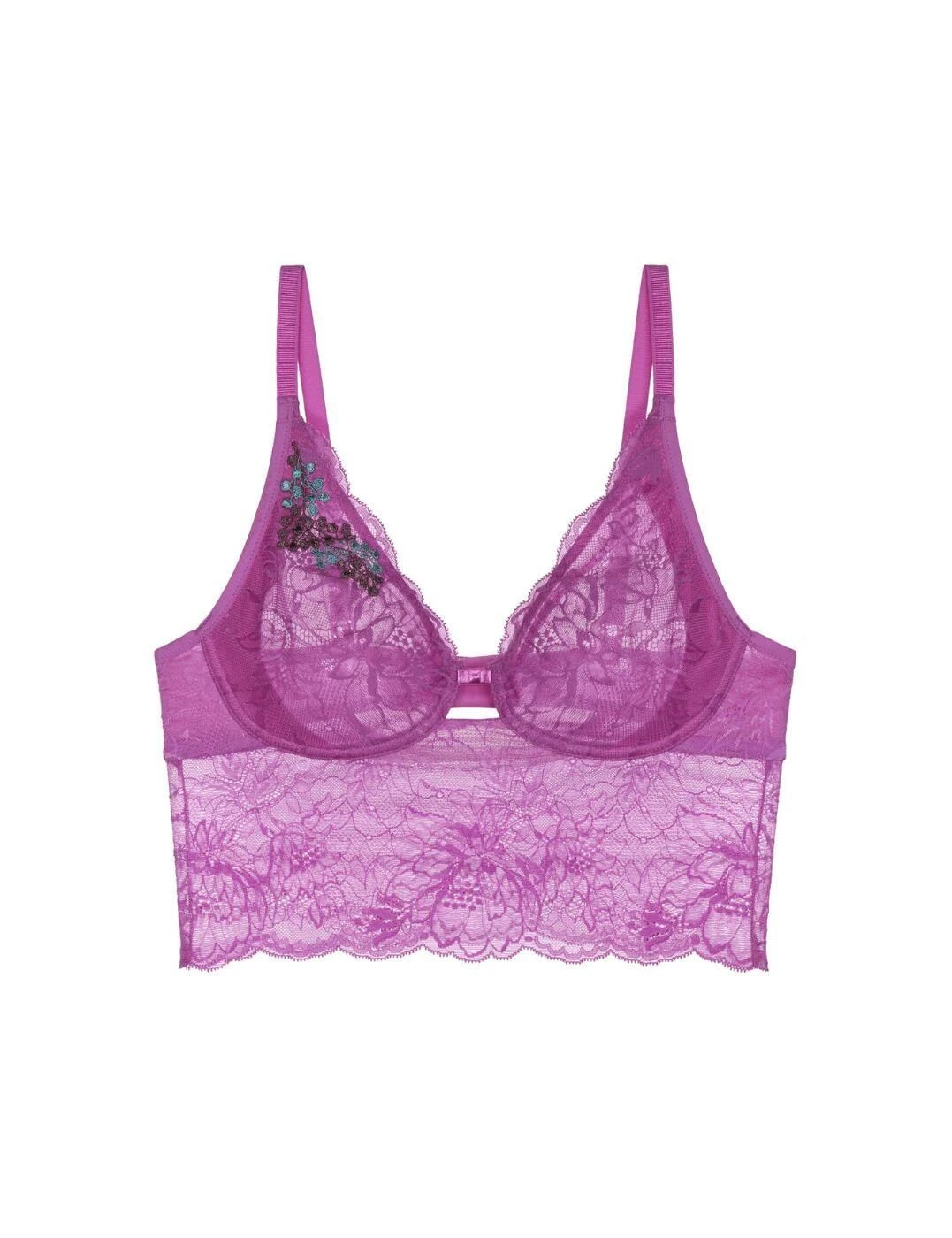 The Triumph Amourette Charm Summer Bustier is an everyday lingerie piece that blends comfort, elegance, and style. This bustier was expertly designed to hug your body in all the right places for a comfortable fit. Crafted from an all-over sheer stretch lace with gorgeous embroidery detail, its high apex and longline design provides superior coverage and shaping. The non padded and wireless style allows you to feel unrestricted while adjustable straps can be adjusted for optimal fit during your day. At the back, a hook and eye closure ensure that it sits securely against your body while a centre cut-out with mini bow adds a pop of feminine flair to this elegant piece. And to complete the look, why not pair it with matching lingerie pieces also available from the Triumph Amourette Charm range? With its overall elegance, adjustable design, and chic details, this is a bustier perfect for any special occasion or simply for every day wear.