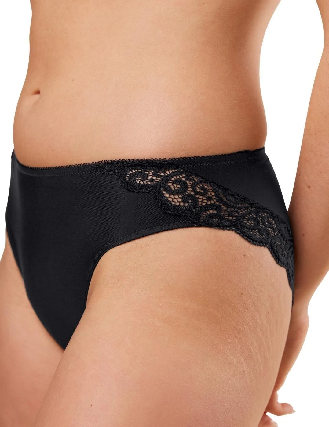 If you’re looking for style and comfort, something perfect for every day, look no further than this Tai brief from the Amourette range by Triumph. Featuring a classic shape with a low-rise waist and medium rear coverage it flatters your curves beautifully. It is crafted from a soft microfibre with soft thin elastics and smooth stitching ensuring a comfortable fit all day long. Semi-sheer lace sits along the rear outline adding an elegant touch to an everyday piece. Complete the full look by easily pairing this brief with the matching lingerie that is also available.