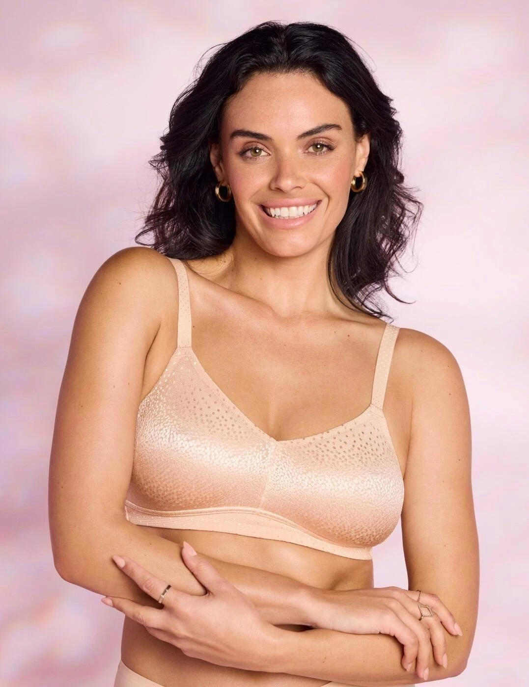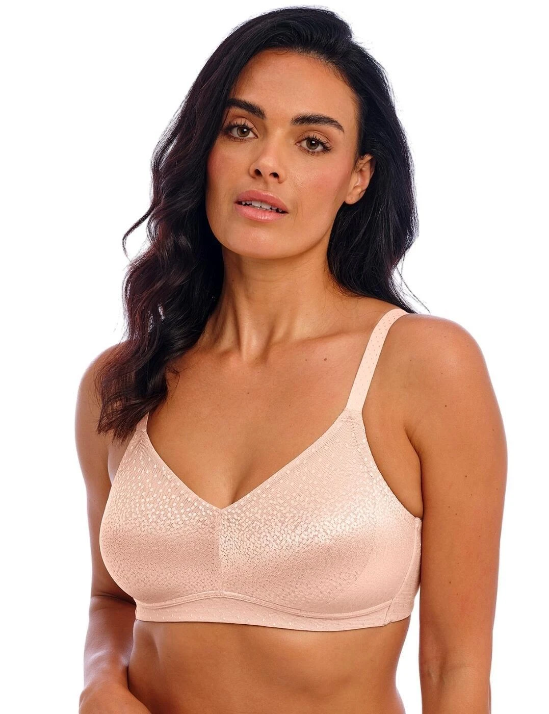 The most loved Back Appeal range by Wacoal is back and is introducing a new style. This wire free bra is new to the collection and is here to provide great support like always but with a more comfortable fit. It features non-padded cups that offer good coverage with a wireless design for a soft feel. The bra prioritises support with a hidden sling in the cups, thin spacer fabric at the back and more coverage at the back and sides for a smooth and sleek silhouette. A feminine feel is still guaranteed as it is crafted from the iconic Back Appeal jacquard fabric with a dot design and accent sheen. Create your perfect fit with adjustable straps that are close set for less slippage and the hook and eye closure.