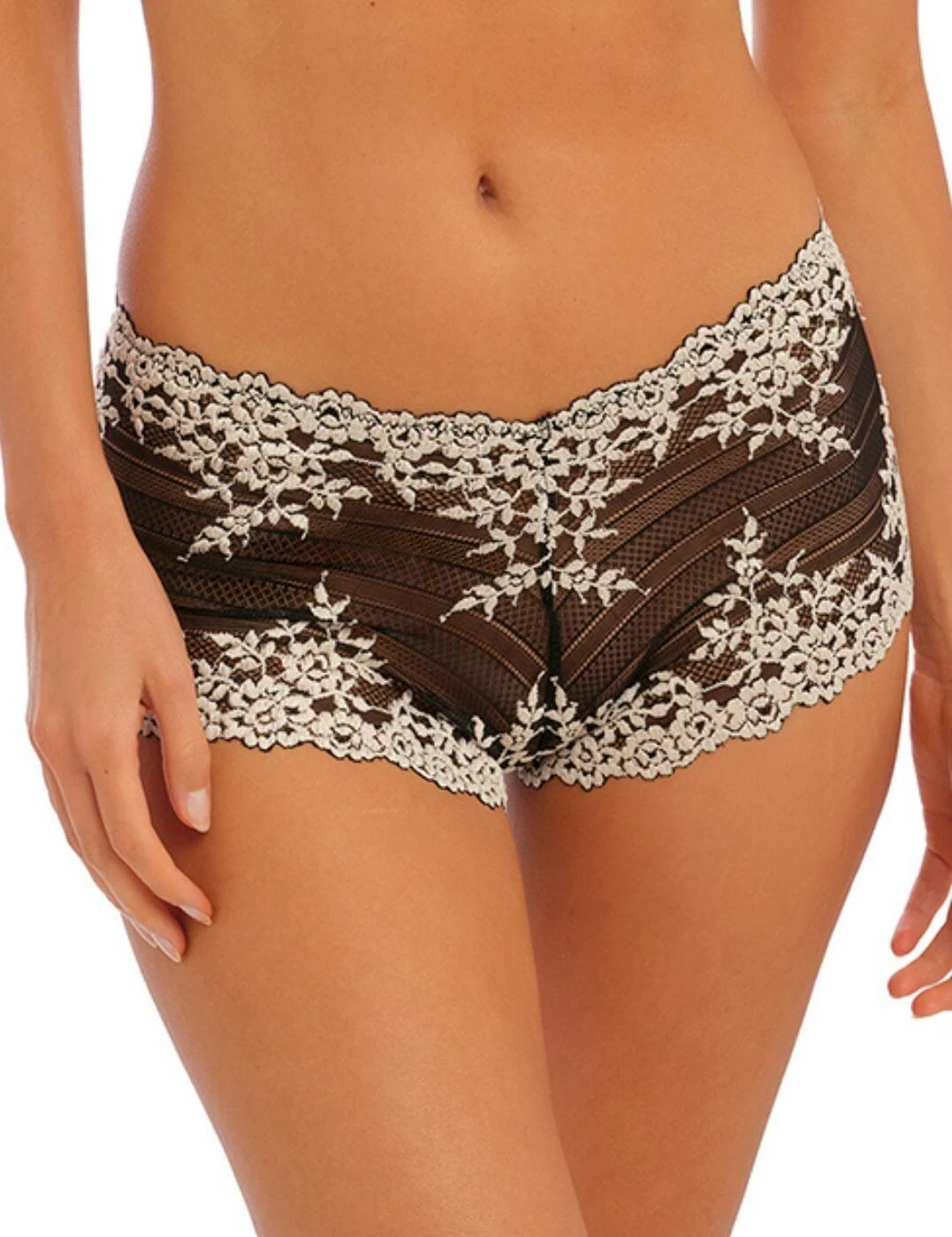 These shorty briefs from the Embrace Lace collection by Wacoal is an luxurious must have in every womans lingerie drawer. The decorative semi-sheer tulle fabric seductively shows a glimpse of skin and the added floral lace trim creates a stylish feminine finish. A low-rise waist and cheeky rear coverage design emphasise your beautiful curves. Wear with matching lingerie from the chic Embrace Lace collection by Wacoal.