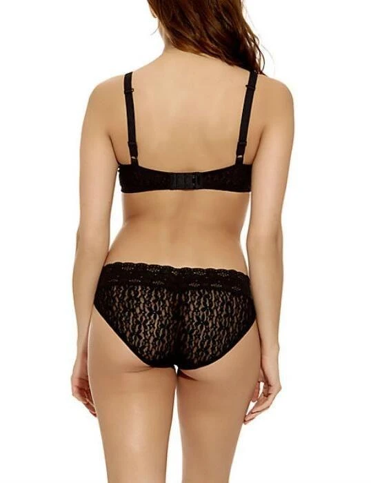 The Wacoal Halo Lace range combines everyday comfort and sexy lingerie. The Halo lace brief is designed with a classic bikini-style fit sitting comfortably mid-rise and offering moderate rear coverage. It is covered in a feminine semi-sheer lace that lays softly against the skin along with the matching stretch lace waistband. Pair with any of the matching lingerie that is also available for a fully coordinated look.