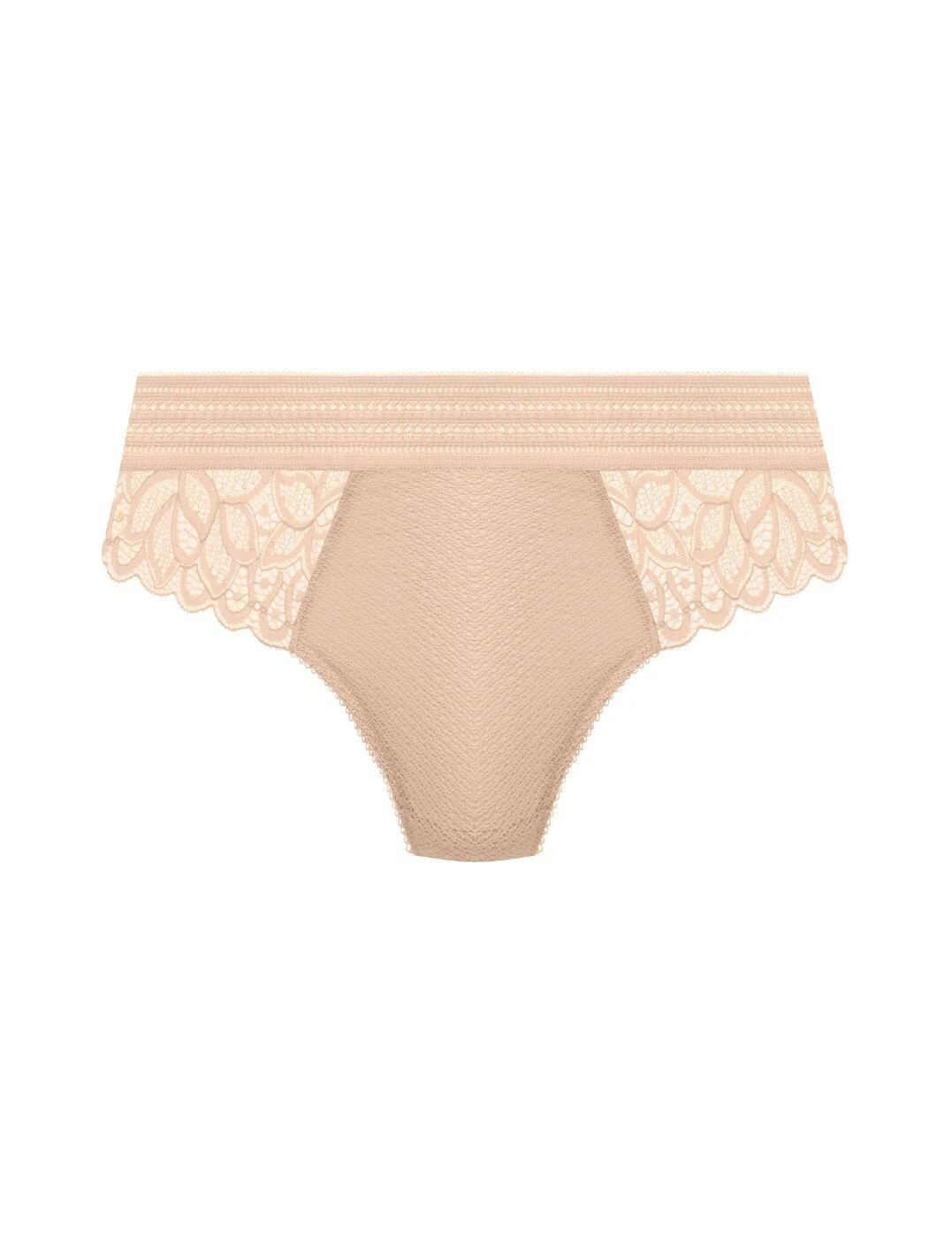 Wacoal’s Raffine tanga briefs are flirty and feminine, with a versatile low-rise waist and minimal rear coverage eliminating visible panty lines, suitable for any occasion. The sides and rear are made with a semi-sheer floral lace design that adds a chic touch, with gently scalloped edges for a playful feel. The waistband is a decorative elastic to ensure a snug, secure fit. Wacoal’s Raffine range features many bras that perfectly combine with these briefs for a flawlessly charming combination.