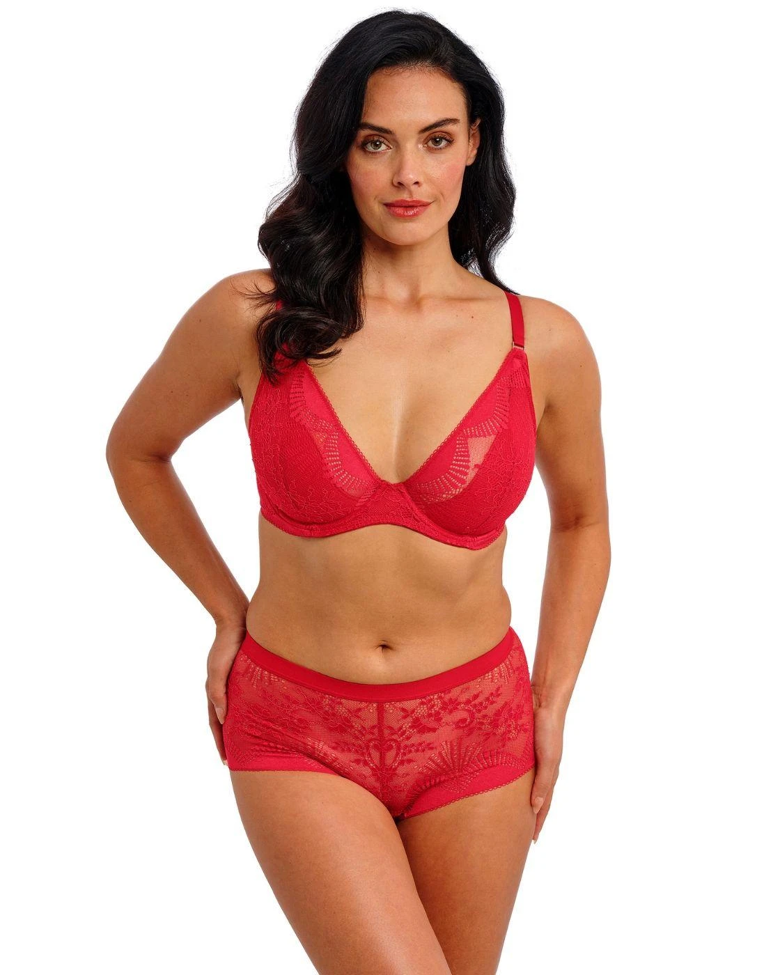 Embrace your femininity with the Wacoal Sensu Lace underwired plunge bra. Perfect for low dresses or tops this plunge bra has non-padded cups for a natural fit whilst the underwired provides subtle uplift and amazing support. The elastic at the neckline ensures a better fit, so you no longer have to worry about constant adjusting throughout the day. And for those with a larger bust, the stretch lace wings lined with stretch mesh provide extra support and comfort. The inner 3/4 cup construction, along with soft spacer fabric, gives you a smooth and seamless look under any outfit. And while the bottom cups are opaque, the all-over stretch lace adds a touch of sensuality and elegance to the design. Create your perfect fit with adjustable multiway straps and a hook and eye closure. And to complete the look, the Wacoal Sensu Lace range has matching lingerie also available.